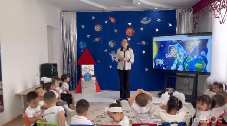 Мақсаты: Балаларға ғарыш әлемі жайлы түсінік беру,Еліміздің ғарышкерлері Тоқтар Әубәкіров, Талғат Мұсабаев жайлы әңгімелеу. Сурет бойынша әңгімелей отырып тілдік қорын жетілдіру.Ойлау, есте сақтау қабілеттерін дамыту. Балаларды ептілікке, шыдамдылыққа, шығармашылыққа баулу.