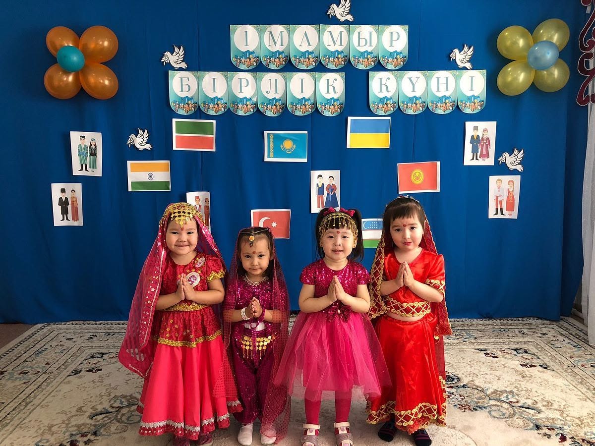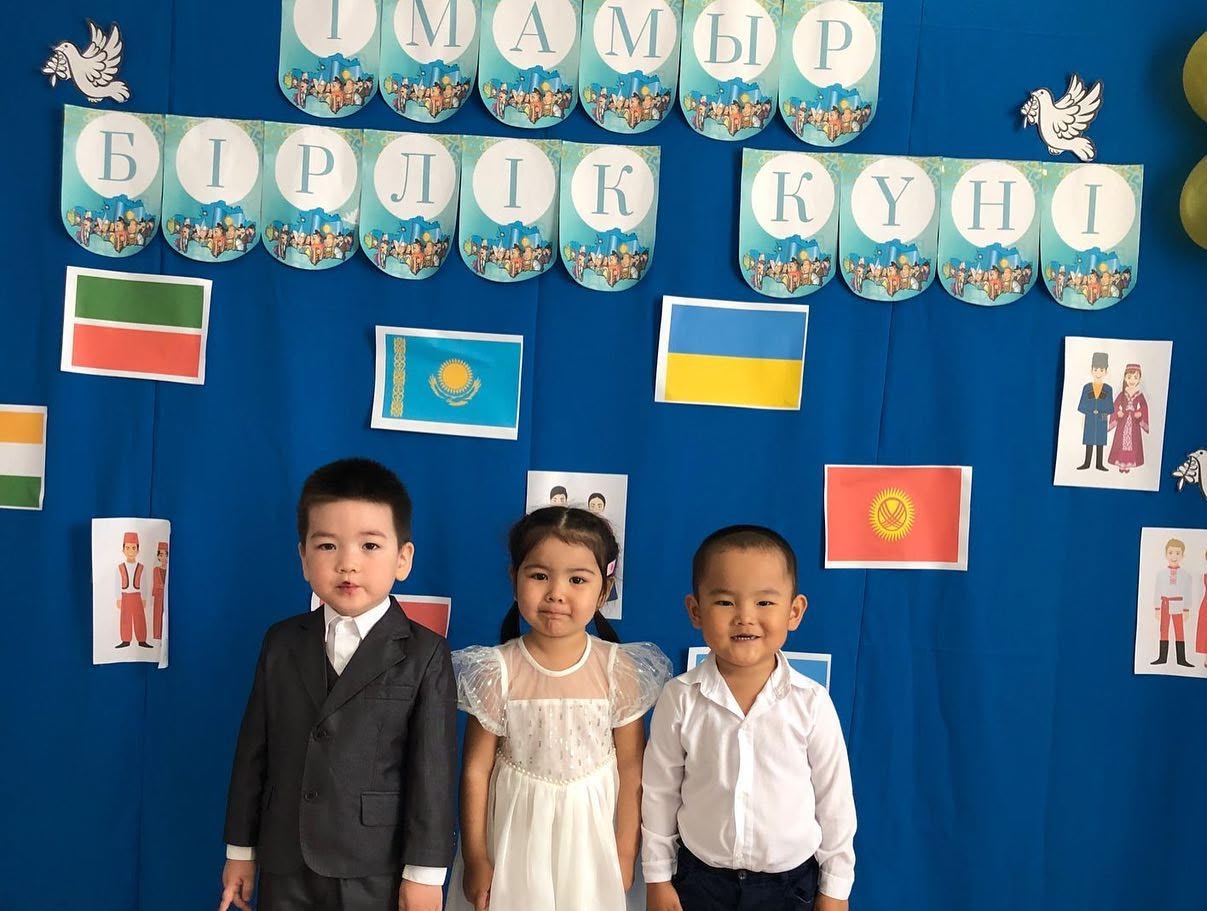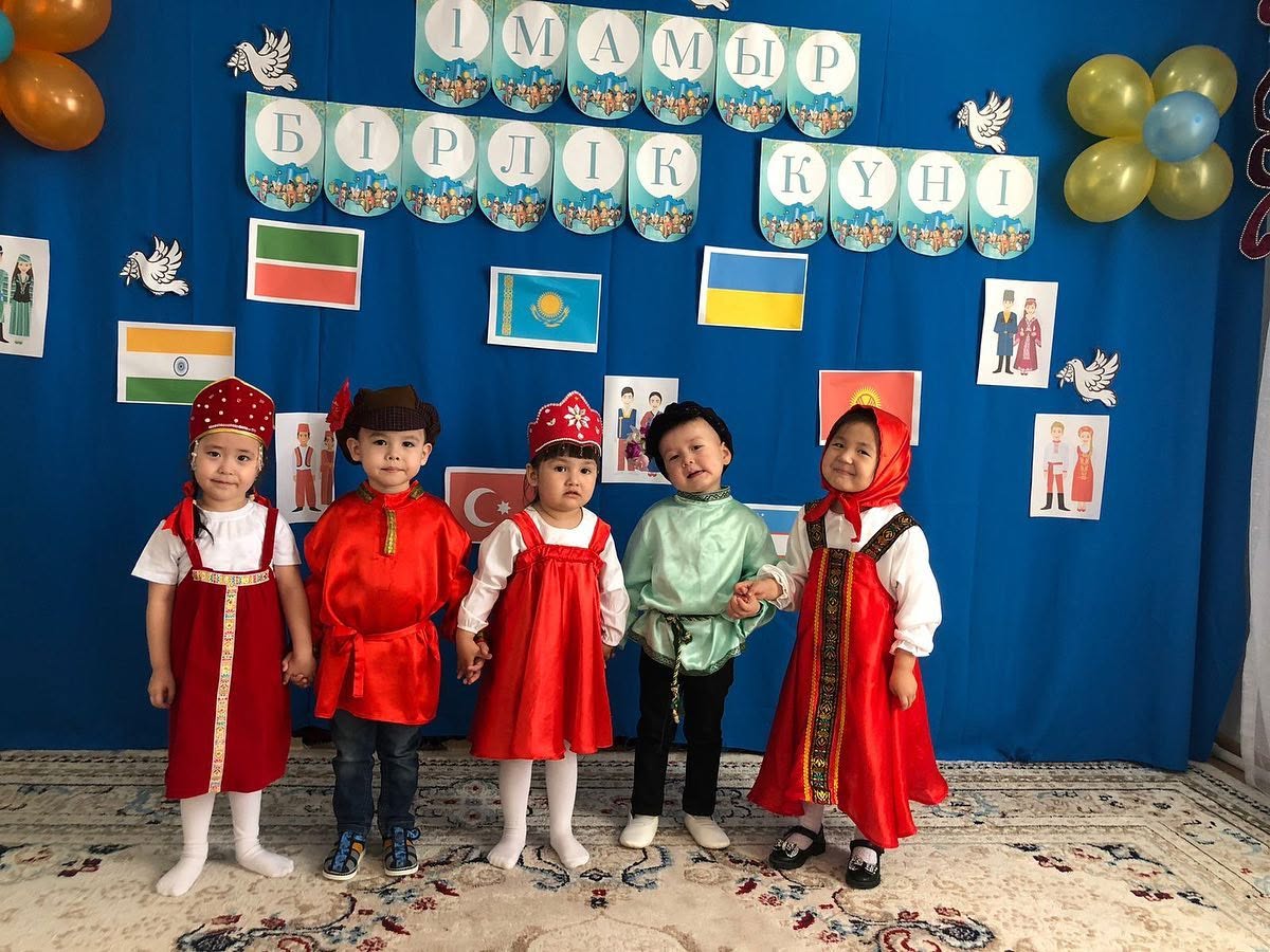 Мақсаты: 1-мамыр Қазақстан халықтарының бірлігі күні екенін балаларға айтып ұғындыру. Балаларды татулыққа, достыққа, елін, жерін сүйе білуге үйрету. Басқа ұлт өкілдерімен таныстырып олармен тату, достық қарым-қатынаста болуға тәрбиелеу.