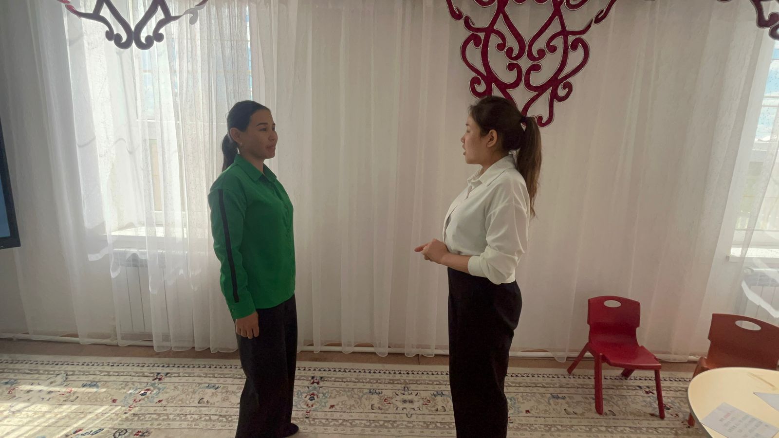 Мақсаты: педагогтарды жақсы көңіл-күйге шақыру, қарым-қатынастарын нығайту, өзін еркін сезінуге көмектесу